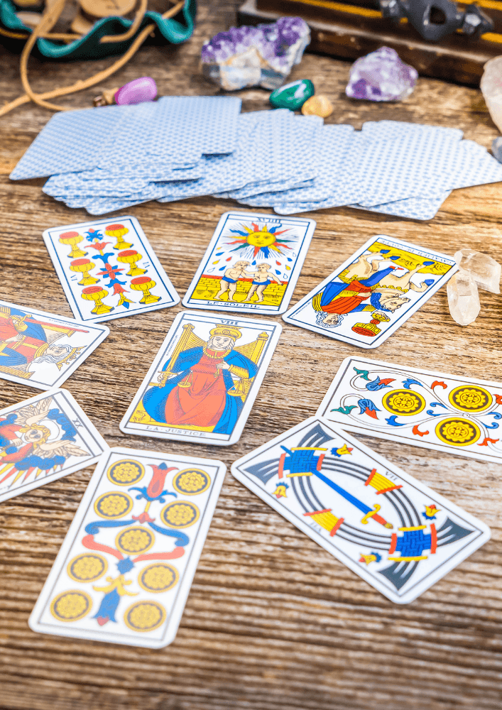 Je ne fais pas de voyance. Ma démarche s'appuie sur une palette d'outils ésotériques (Tarot, alchimie, chamanisme, numérologie, oracles, pendule, remote viewing…) pour t'accompagner avec bienveillance. Je te transmets les messages et conseils que les cartes révèlent en réponse à tes questionnements, je t'aide à identifier et lever tes blocages, et je te soutiens pour retrouver un état d'esprit positif et une vie plus épanouie.